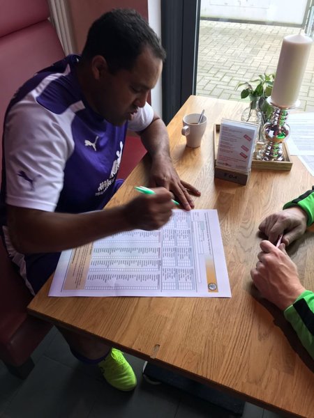 Hier sehen wir unseren Freund und Kugelblitz Ailton beim Ausfüllen unseres Tippscheins zur WM 2014.