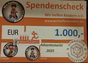 Gut 600,- Euro wurden uns übergeben, die der ehemalige "Cheffe" vom Gymnasium auf exakt 1.000,- Euro aufgestockt hat!!!