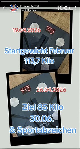 Ganz offensichtlich im Nutella-Rausch nahm das Elend seinen Anfang. Dincer rief bei Wir helfen Kindern e.V. an (Volker Machura) und machte folgendes Wettangebot. “Ich, Dincer, werde jetzt abnehmen. Spätetsens am 30.6.2026 werde ich maximal 85 Kilogramm wiegen und am selben Tag das Sportabzeichen ablegen”. Das käme einer Gewichtsreduzierung von 28,6 Kilogramm gleich. Nicht ausgeschlossen, aber durchaus höchst anspruchsvoll. Das Event wird am 30.06.2026 auf dem MTV-Sportplatz in Salzgitter-Bad stattfinden. Alle sind natürlich herzlich eingeladen dazu.