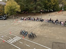 Wir weihen feierlich den aktuell 14. Fahrrad-Übungsplatz in der Region ein. Die Gästeliste ist nicht nur lang und zahlreich; sie ist bemerkenswert.