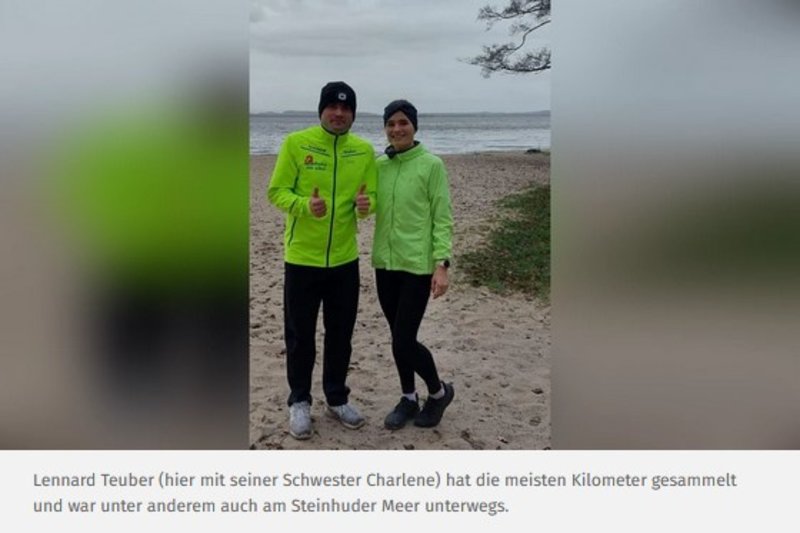 Die meisten Runden hat Lennard Teuber gedreht, der nach seinem ersten Platz im Premierenjahr 2021 bereits zum zweiten Mal erfolgreichster AdventSZläufer geworden ist. 446,4 Kilometer sind es am Ende geworden, wobei sich der Jugendfußballtrainer des SV Union Salzgitter lediglich am 16. Dezember einen Ruhetag gegönnt hat. Drei Tage vor dem Ende absolvierte Teuber sogar noch einen 30-Kilometer-Lauf um das Steinhuder Meer. „Dabei hat mich meine Schwester Charlene begleitet. Sie wollte unbedingt auch den größten See Niedersachsens umrunden. Das hat sie auch nicht umsonst getan. Mein Sponsor hat die Leistung mit übernommen“, berichtet Teuber. Am Ende hat die Apotheke „Am Eikel“ stolze 1000 Euro an den Verein „Wir helfen Kindern“ überwiesen.