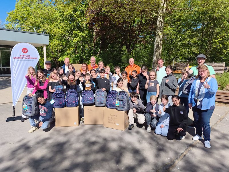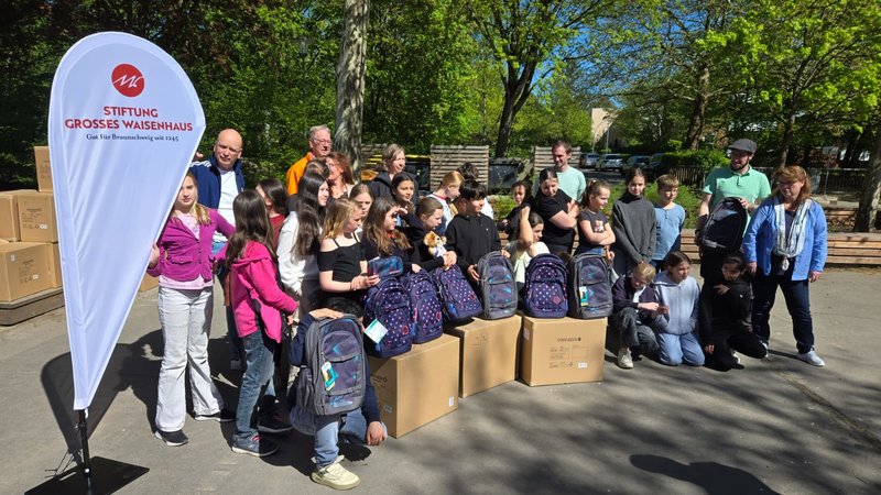 Gemeinsam mit der Stiftung Großes Waisenhaus aus Braunschweig durften wir insgesamt 109 nagelneue Schulrucksäcke, inklusive "Schlampermäppchen" übergeben.