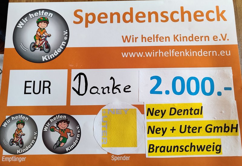 Wir helfen Kindern bedankt sich von Herzen für "fette" 2.000,- Euro.